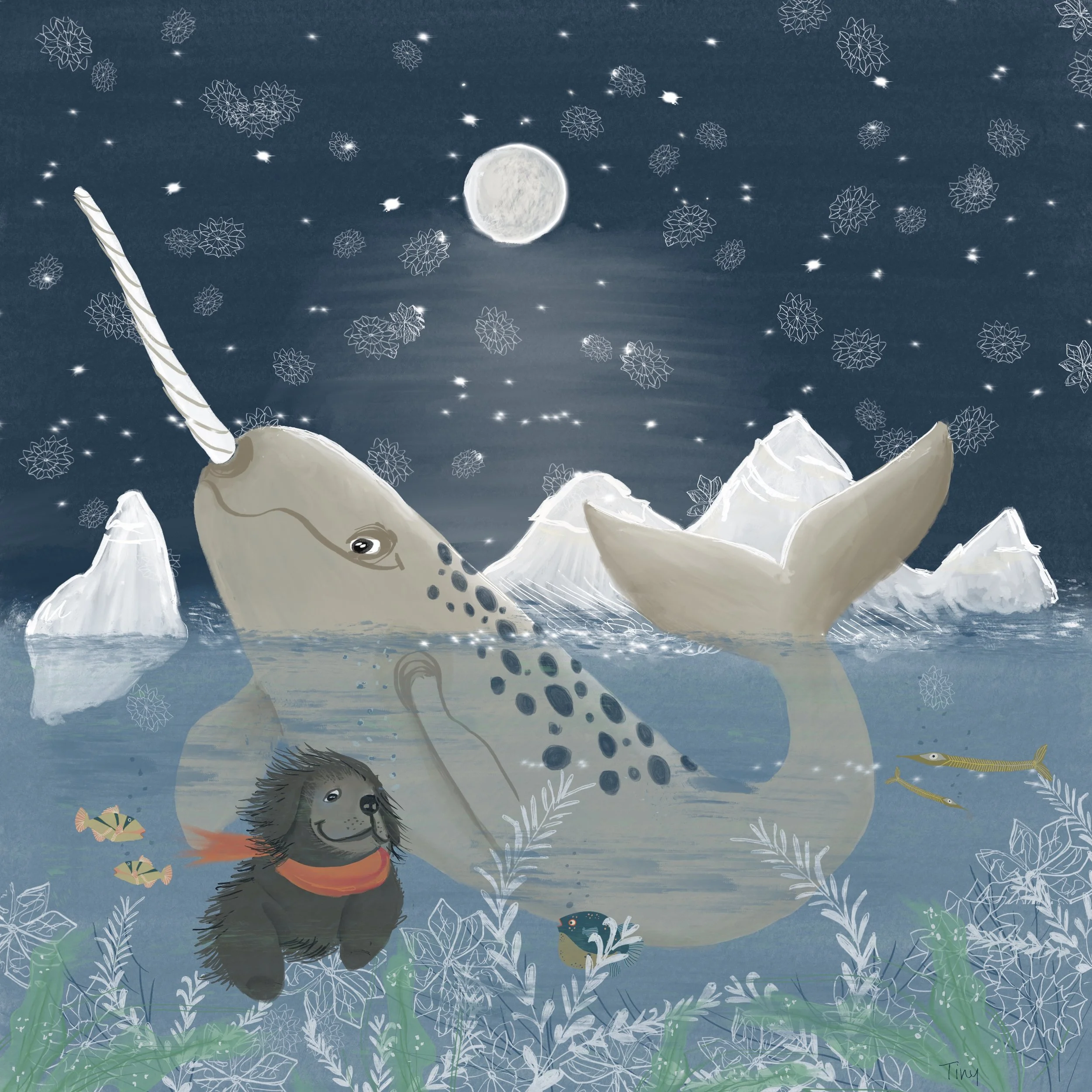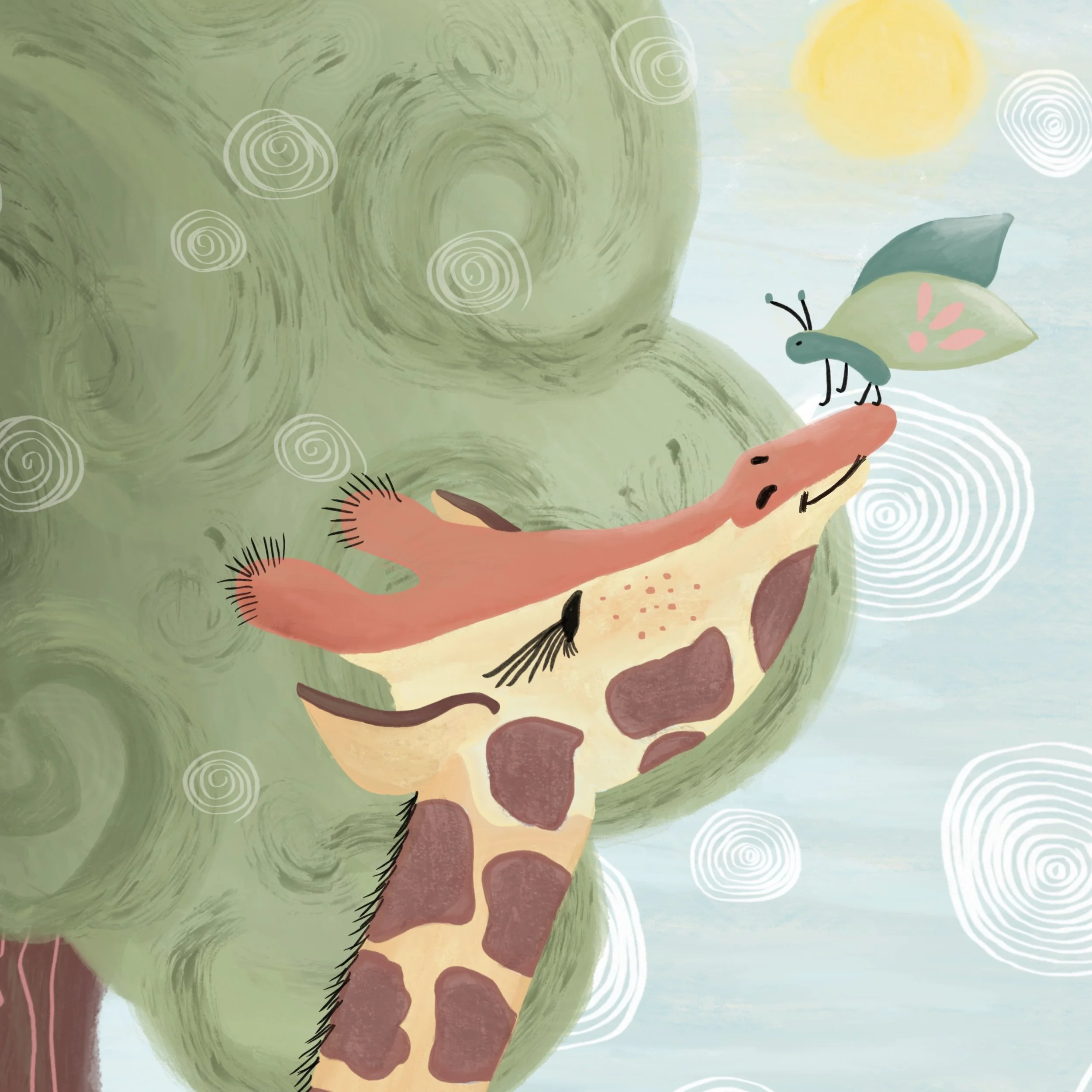 Mijn illustraties beginnen in mijn schetsboek en leven digitaal verder. Ik teken het liefst met potlood en wasco’s, omdat ze sfeer brengen.